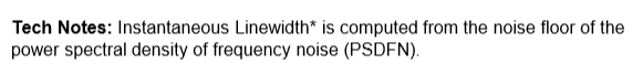 其激光器的瞬時(shí)線寬是根據(jù)頻率噪聲功率譜密度通過(guò)計(jì)算機(jī)運(yùn)算得出的結(jié)果。如果換成其他廠家的測(cè)試設(shè)備得到的線寬結(jié)果可能和OEwaves自己標(biāo)稱的技術(shù)指標(biāo)有一定的偏差。