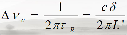 如果你連公式也懶得看的話,就這樣理解吧,無(wú)源諧振腔一旦確定,其本征線寬是確定的值,腔內(nèi)光子壽命越長(zhǎng),本征線寬越窄。諧振腔越長(zhǎng),本征線寬越窄,諧振腔的損耗越小,本征線寬越窄。