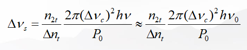 極限線寬則是針對(duì)有源的激光器諧振腔而言的,一旦激光器的諧振腔確定,那么這個(gè)激光器就有一個(gè)理論的極限線寬,也是最窄的線寬。公式也和本征線寬的公式差不多,只是這時(shí)候的光子壽命要受到兩個(gè)因素的影響,諧振腔的損耗和有源介質(zhì)提供的增益。單頻光纖激光器(半導(dǎo)體激光器)的極限線寬公式: