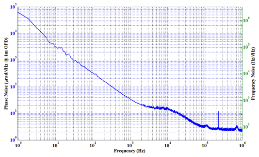 相位噪聲越大,頻率噪聲也越大,反之亦然。這是因為相位噪聲和頻率噪聲的關(guān)系如此緊密,有時候被統(tǒng)稱為相頻噪聲,單頻激光器一般測試相位噪聲。